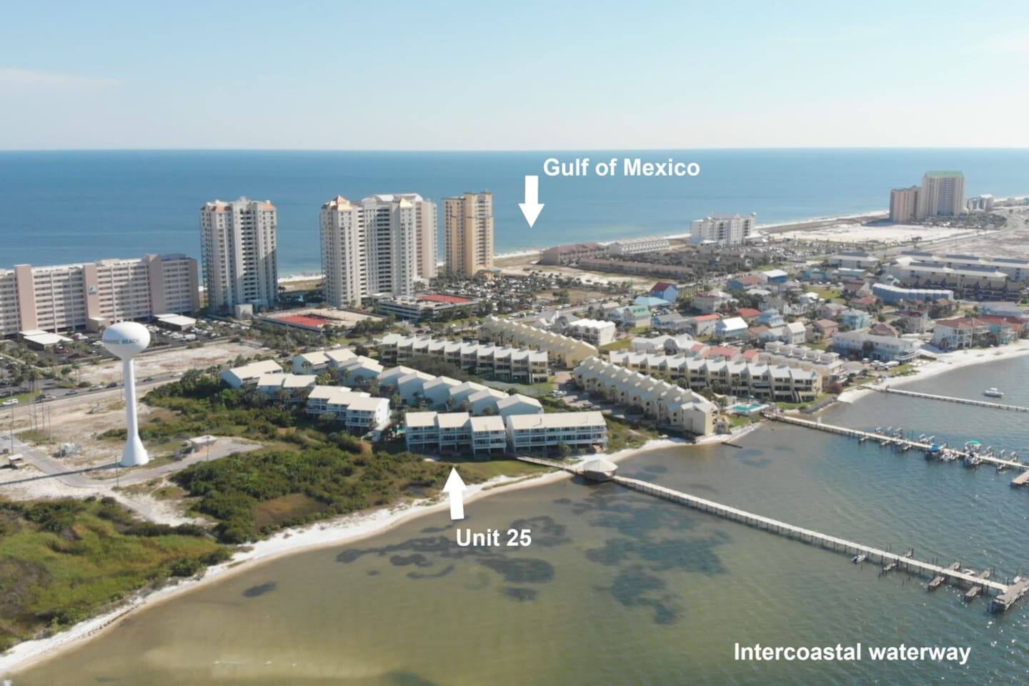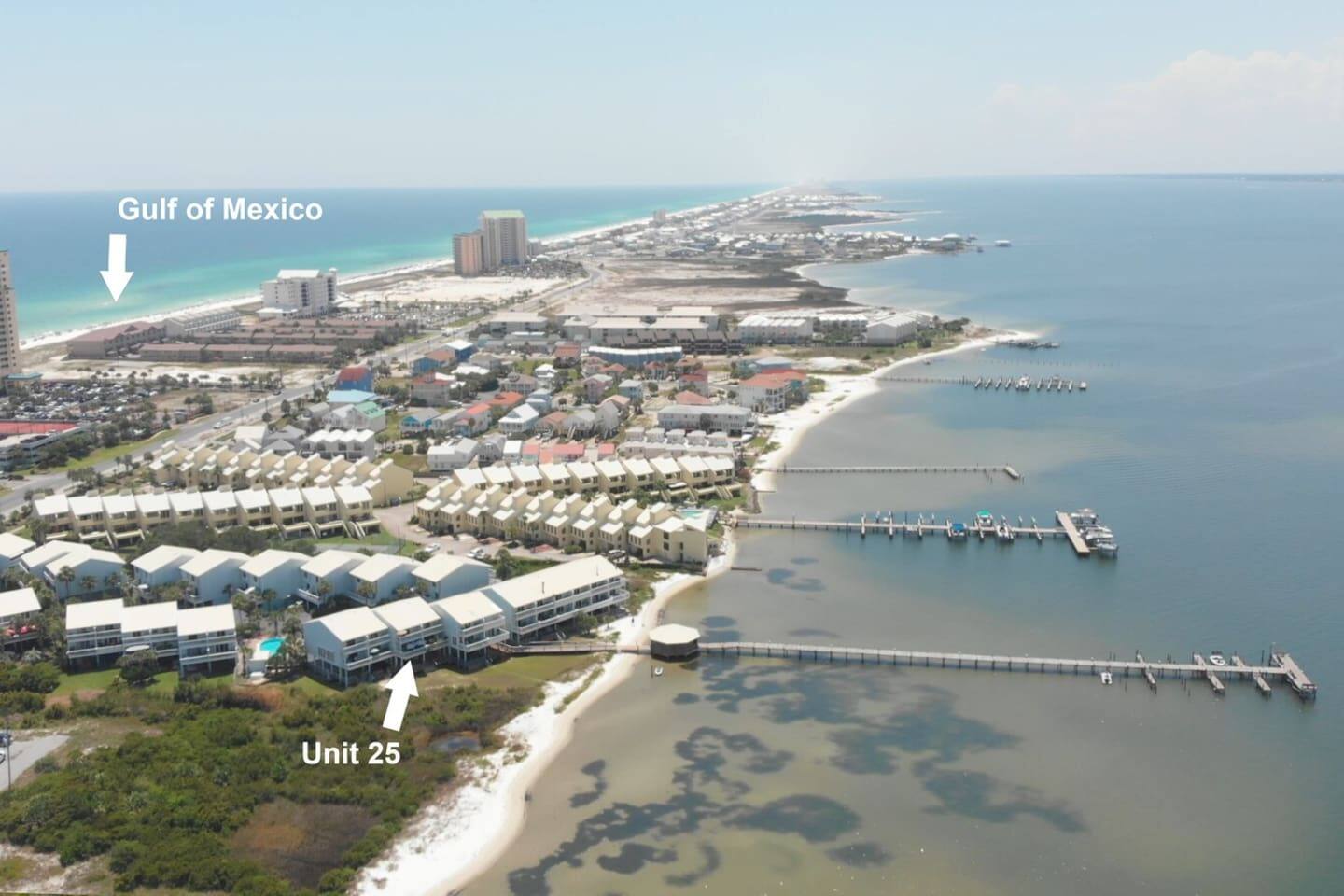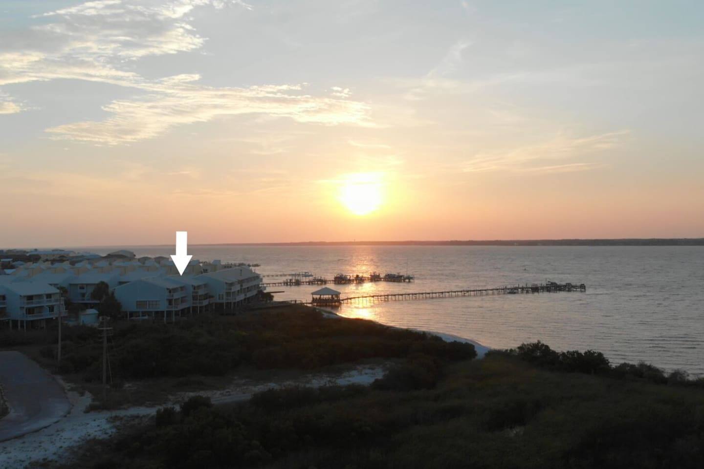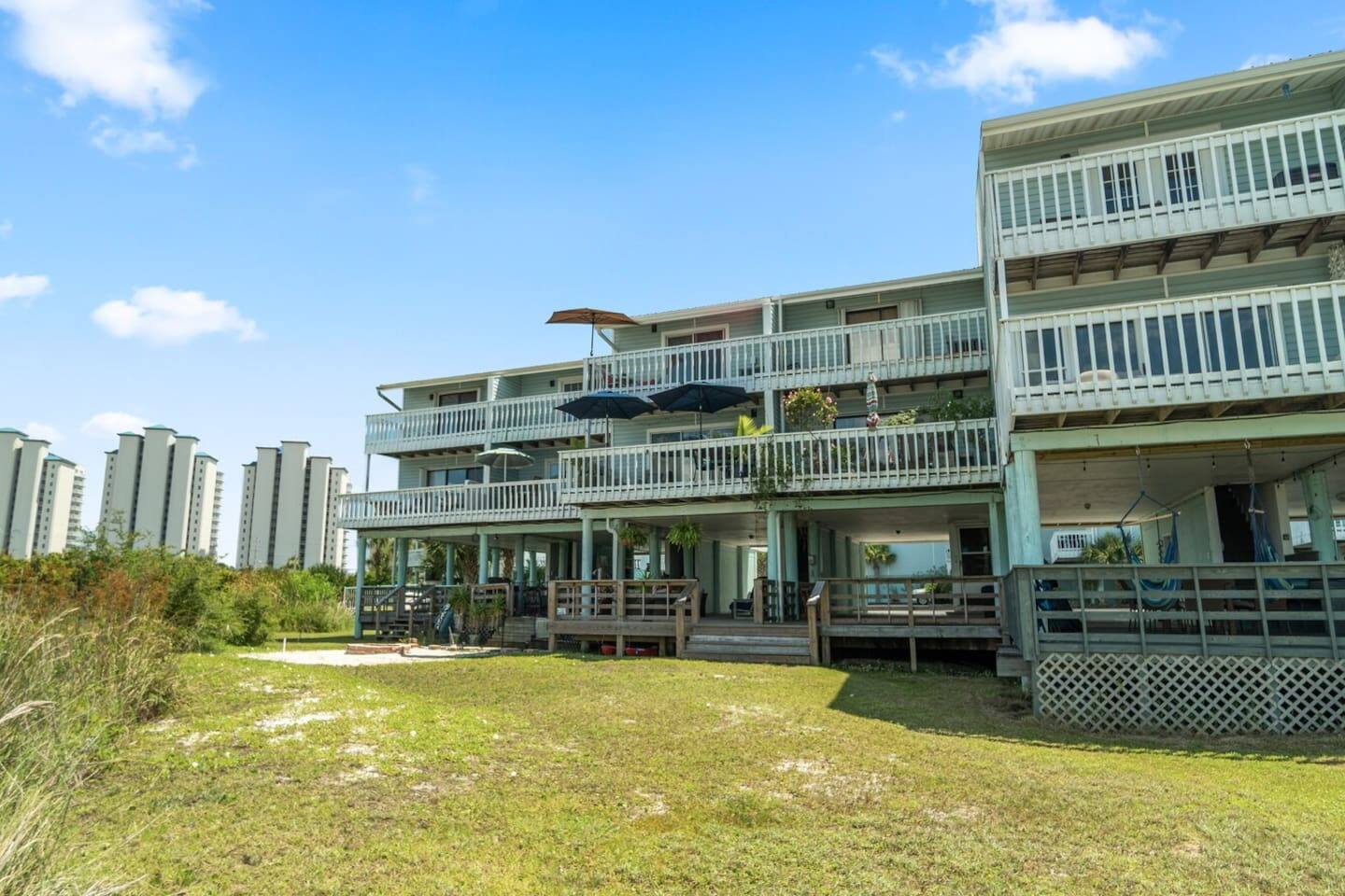 This unit is 3 levels with the main living area located on the 2nd floor and bedrooms on the 3rd floor. Offering 3 large balconies, 2 with comfortable furnishings that include: lounge chairs, a dining table with four chairs, a bistro table and, both decks are finished off with colorful umbrellas in case you need a break from the sun. It's the perfect setting to kick back and relax with a cup of coffee while enjoying the sunrise off the Master Bedroom or Living Room deck. Or, grab your favorite beverage while checking out the boats, dolphins, sunsets and all kinds of fun water activities. Additionally, there is a large deck on the bottom level, complete with a spacious, circular couch and table. From here, you can walk down to the beach just a few steps away. The unit is spacious with a fully stocked Kitchen that includes a balcony with views of the pool. Direct views of the water from the tastefully decorated Living Room which has a couch, love seat, coffee table and large TV. A guest Bathroom, equipped with a tub/shower combination rounds out the main floor. The Main Bedroom offers a King Bed, plenty of closet space and a balcony with views of the water. The 2nd Bedroom also offers plenty of closet space and a Queen Bed. The 2nd Bathroom with shower / tub combination is also located on the 3rd floor. This unit is conveniently located directly across the street from the Gulf of Mexico and an easy walk to restaurants, fishing and night life. There is a queen size air mattress with sheets in the Guest Bedroom if you require extra sleep accommodations.