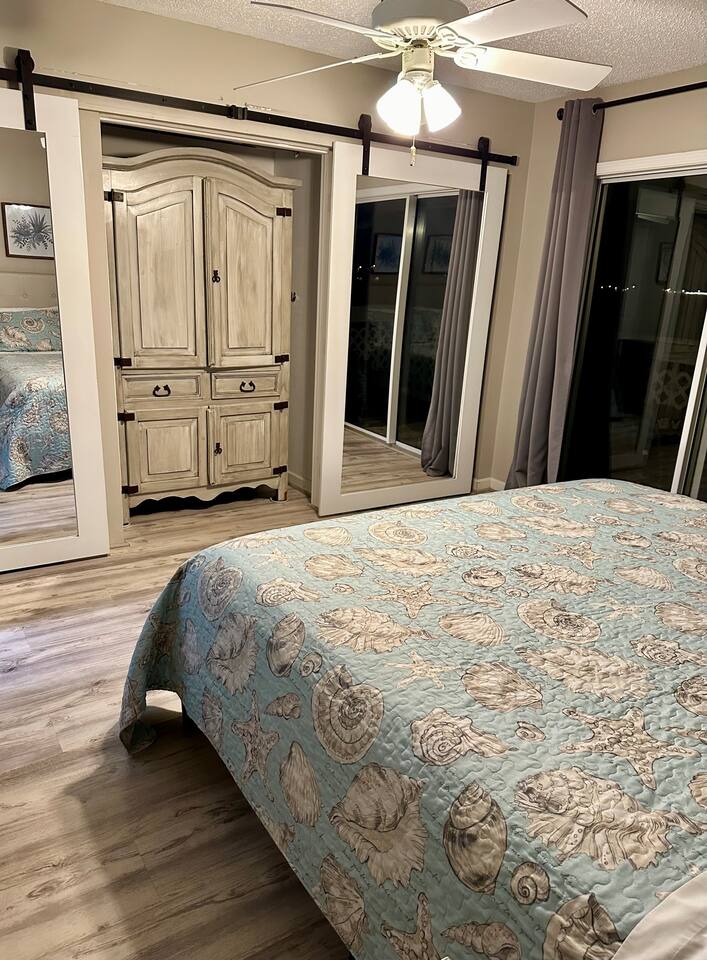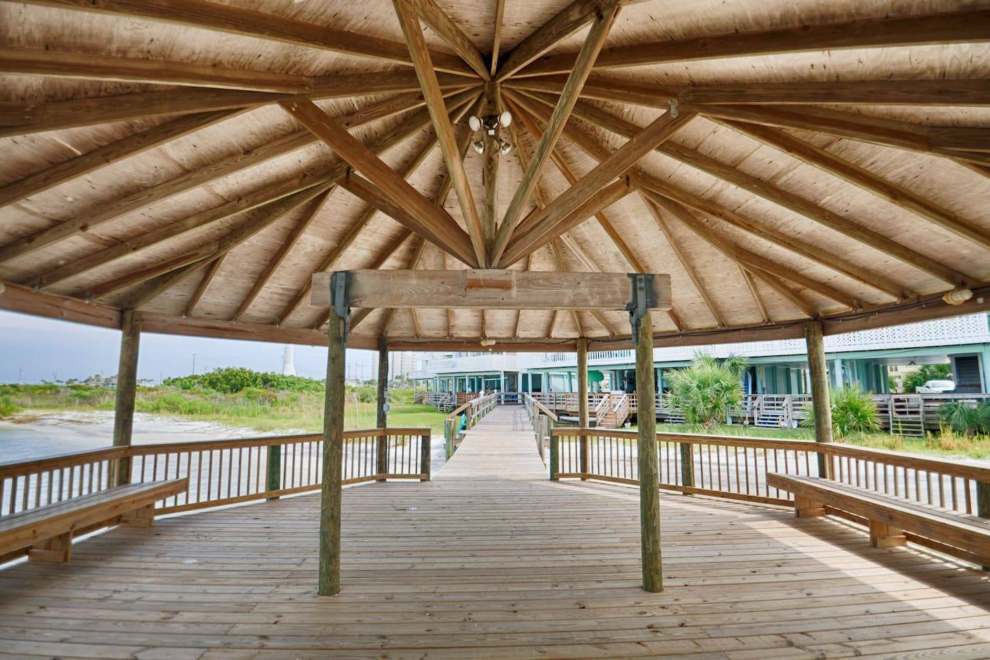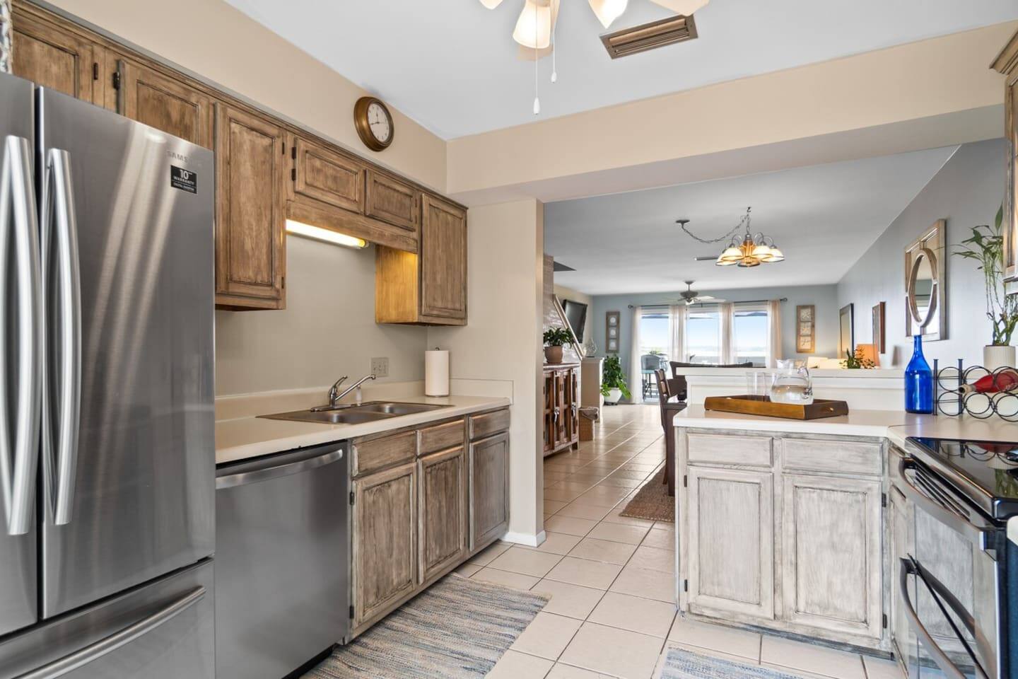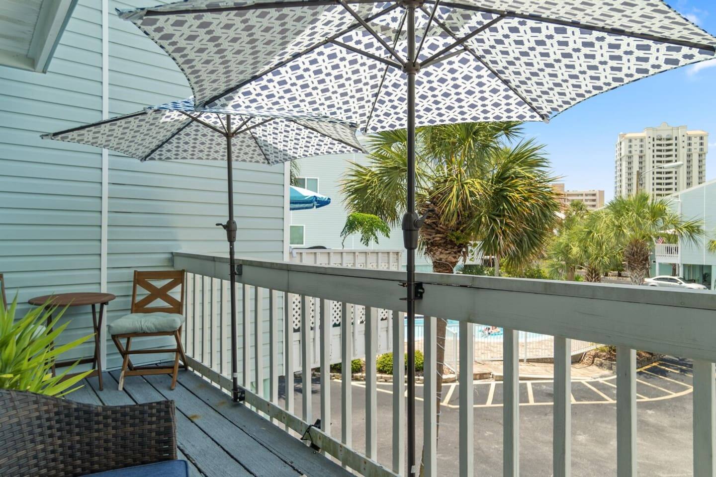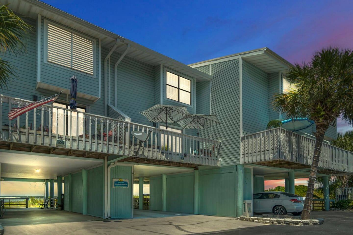 This unit is 3 levels with the main living area located on the 2nd floor and bedrooms on the 3rd floor. Offering 3 large balconies, 2 with comfortable furnishings that include: lounge chairs, a dining table with four chairs, a bistro table and, both decks are finished off with colorful umbrellas in case you need a break from the sun. It's the perfect setting to kick back and relax with a cup of coffee while enjoying the sunrise off the Master Bedroom or Living Room deck. Or, grab your favorite beverage while checking out the boats, dolphins, sunsets and all kinds of fun water activities. Additionally, there is a large deck on the bottom level, complete with a spacious, circular couch and table. From here, you can walk down to the beach just a few steps away. The unit is spacious with a fully stocked Kitchen that includes a balcony with views of the pool. Direct views of the water from the tastefully decorated Living Room which has a couch, love seat, coffee table and large TV. A guest Bathroom, equipped with a tub/shower combination rounds out the main floor. The Main Bedroom offers a King Bed, plenty of closet space and a balcony with views of the water. The 2nd Bedroom also offers plenty of closet space and a Queen Bed. The 2nd Bathroom with shower / tub combination is also located on the 3rd floor. This unit is conveniently located directly across the street from the Gulf of Mexico and an easy walk to restaurants, fishing and night life. There is a queen size air mattress with sheets in the Guest Bedroom if you require extra sleep accommodations.