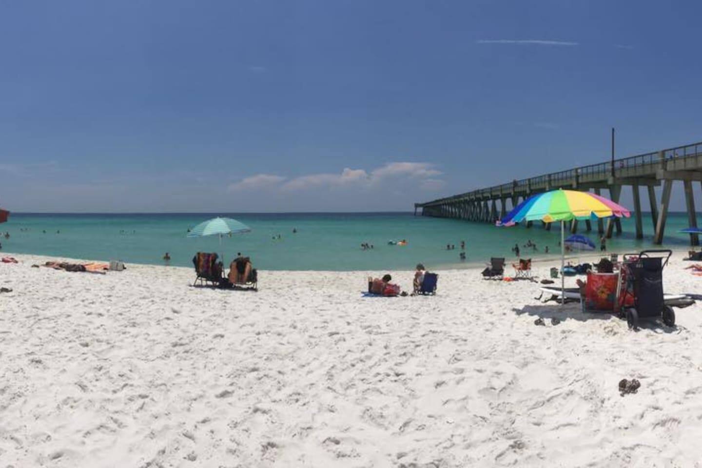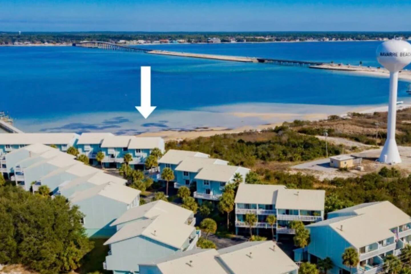 Amenities include a fully equipped kitchen, 2 flat-screen TVs equipped with cable, free WiFi, in-unit laundry machines, 3 private balconies, patio with outdoor dining, air conditioning, complimentary toiletries, fresh towels, 2 carport parking spots. Sandcastle community amenities include a pool, private pier, gazebo, and dock access. Just a short ride away enjoy activities like golfing, shopping, restaurants, and tons of activities for everyone. Nearest Commercial Airport: Pensacola International Airport (PNS) or Ft. Walton Beach (VPS). Navarre is located in between these two cities.